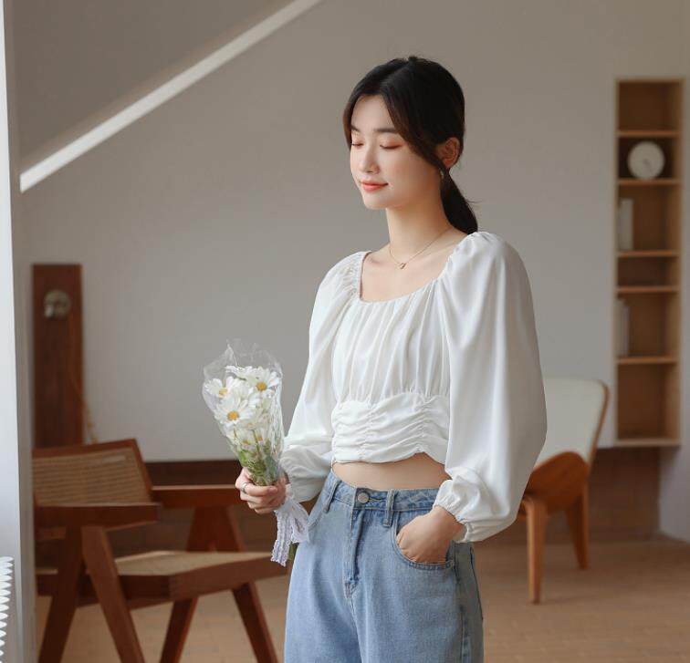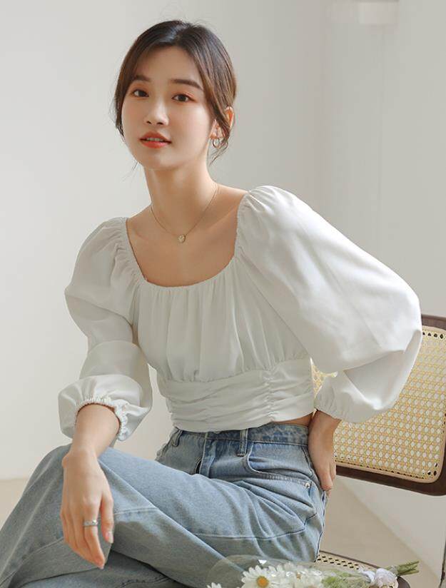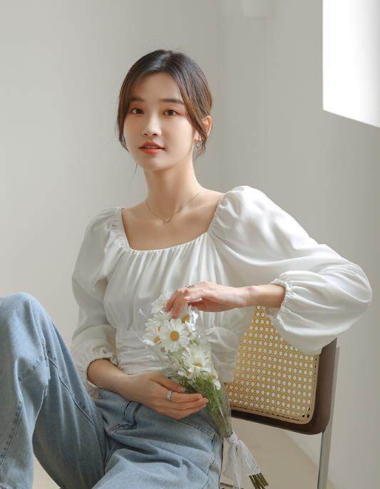 HolidayQueen New long-sleeved clothing for spring lantern solid color slim shirt topWomen's clothing HQT102071