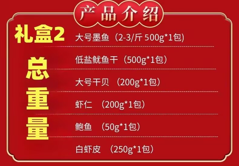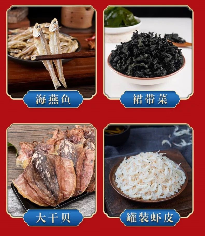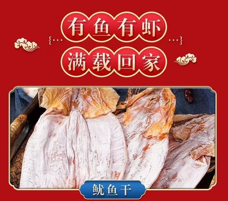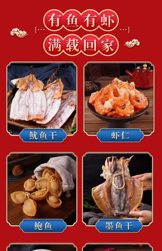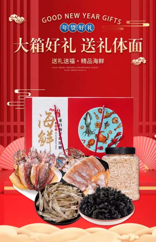 Dried cuttlefish, dried squid, dried abalone and scallop are the gift packages for the new year seafood dry goods