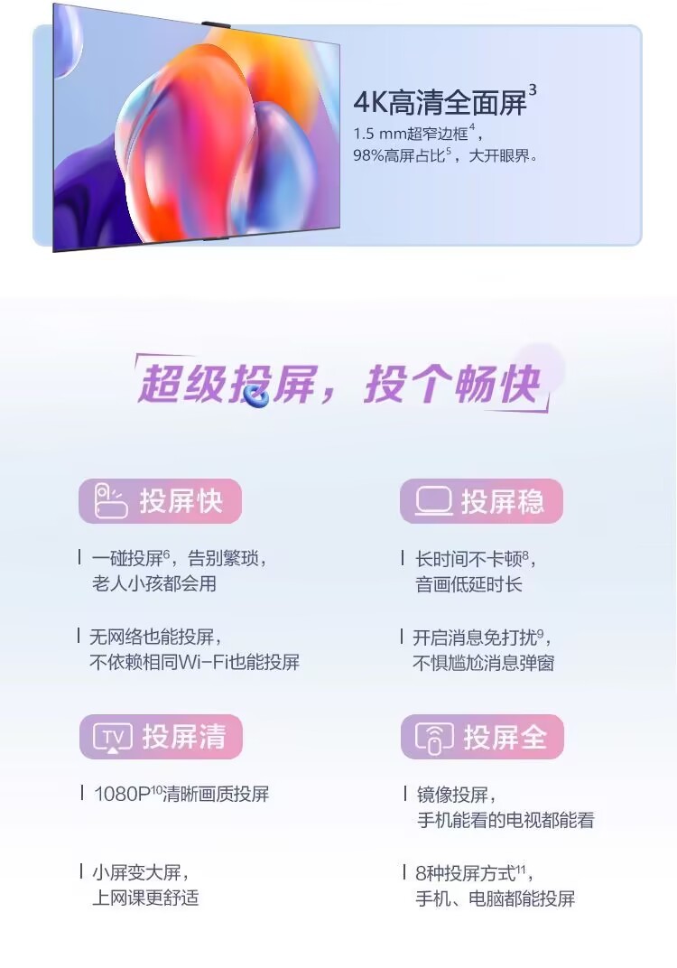 Huawei Vision Smart Screen 4SE 55/65/75 inch Pura70 projection screen 4K TV 85New dual 120Hz