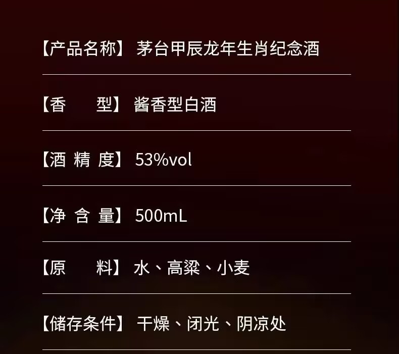 Kweichow Moutai Maotai Jiachen the Year of the Loong Zodiac Memorial Wine 53 degrees 500ml Dragon Zodiac