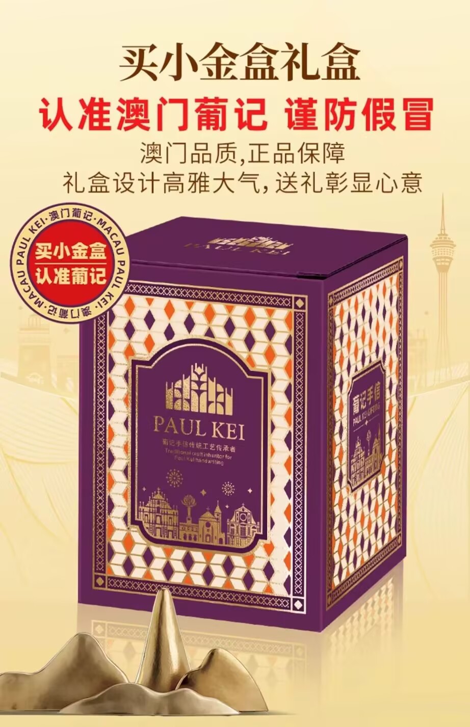 Macao Portuguese small gold box handwritten letter *3 boxes of Melaleuca Butterfly Butter Little Flower Cookies Zero Food Gift Box