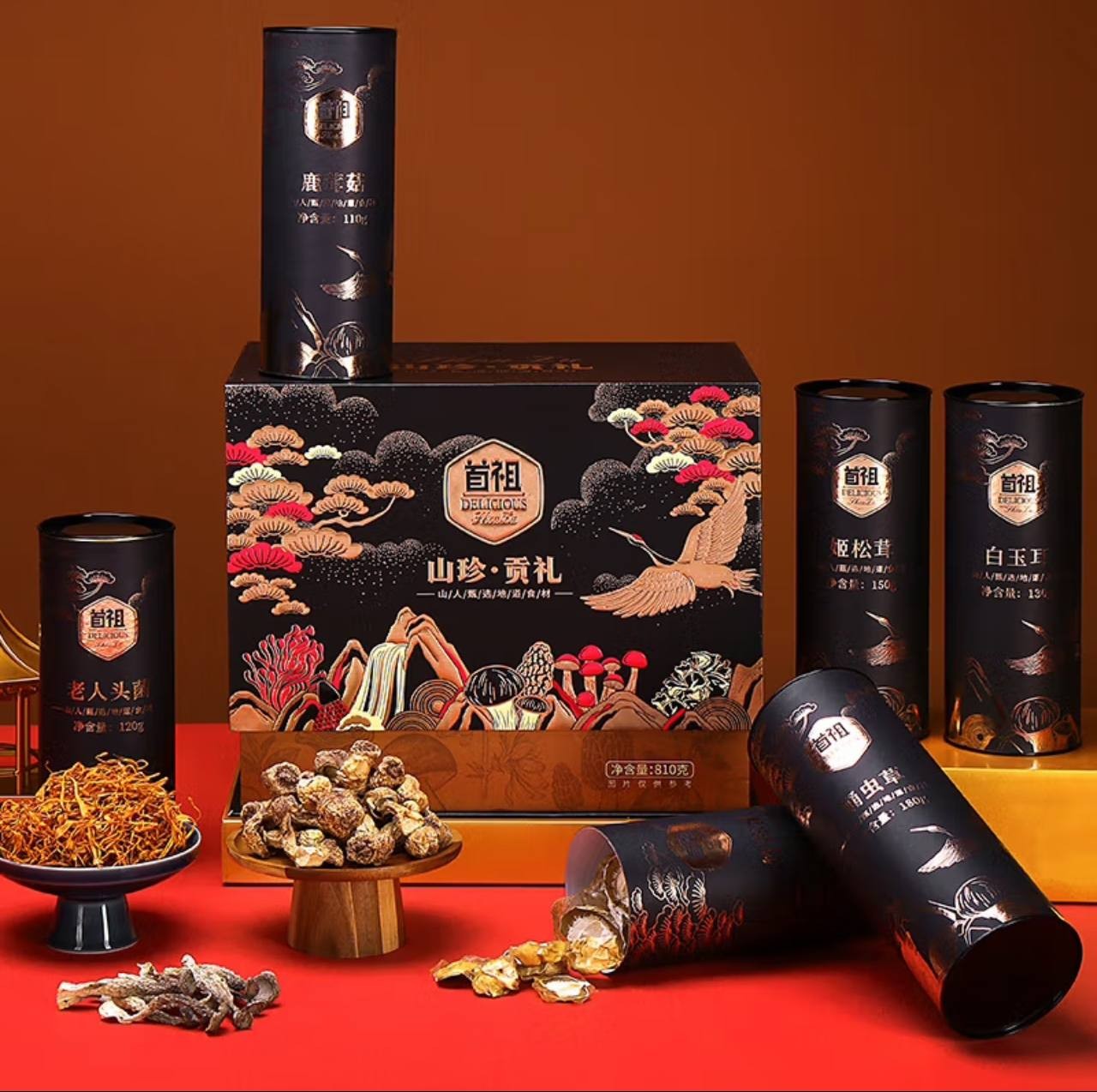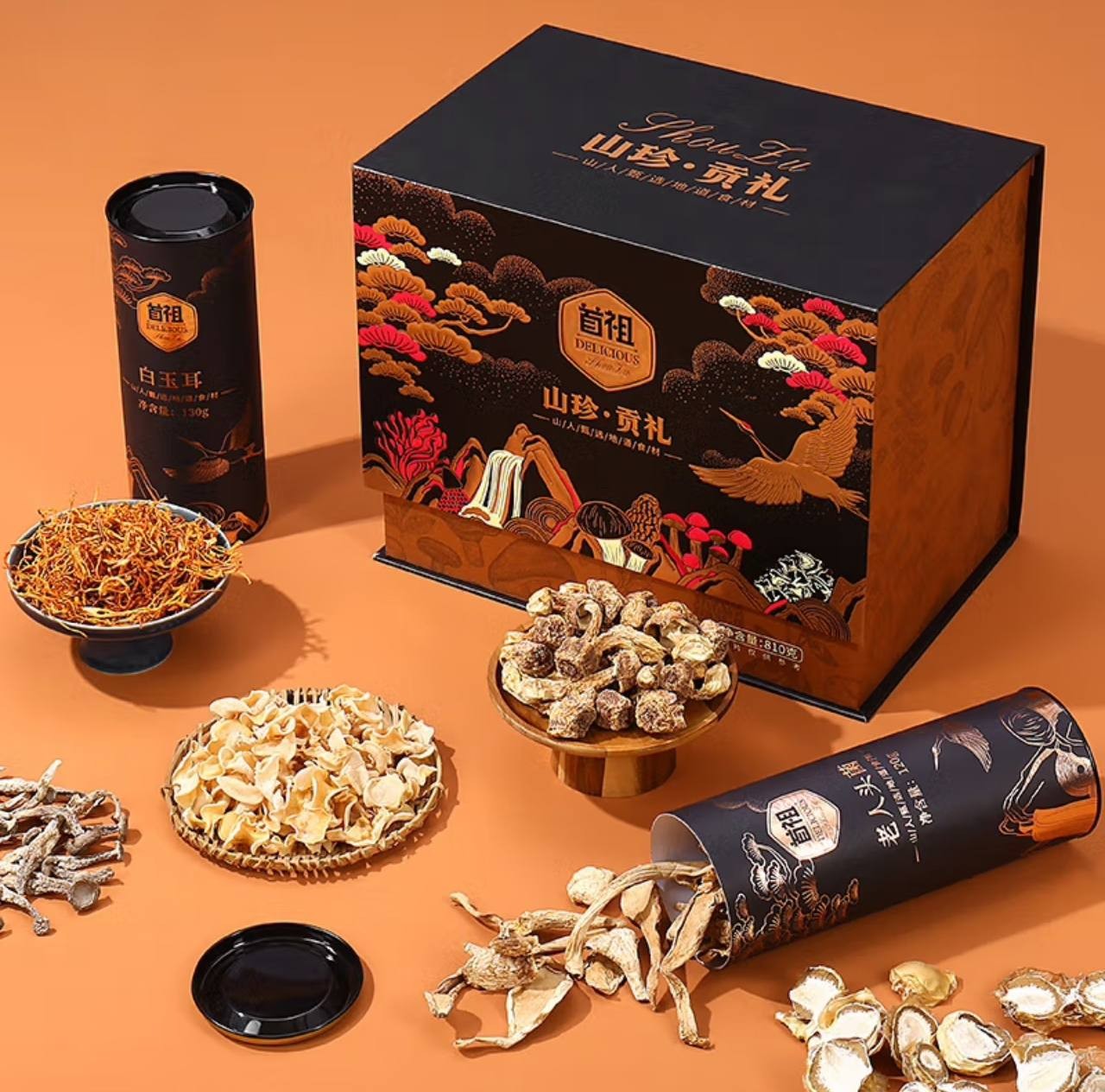 Shouzu Shanzhen Dried Mushroom Gift Box, Gift Holiday Gift Box. Give to customers, elders and friends 810g